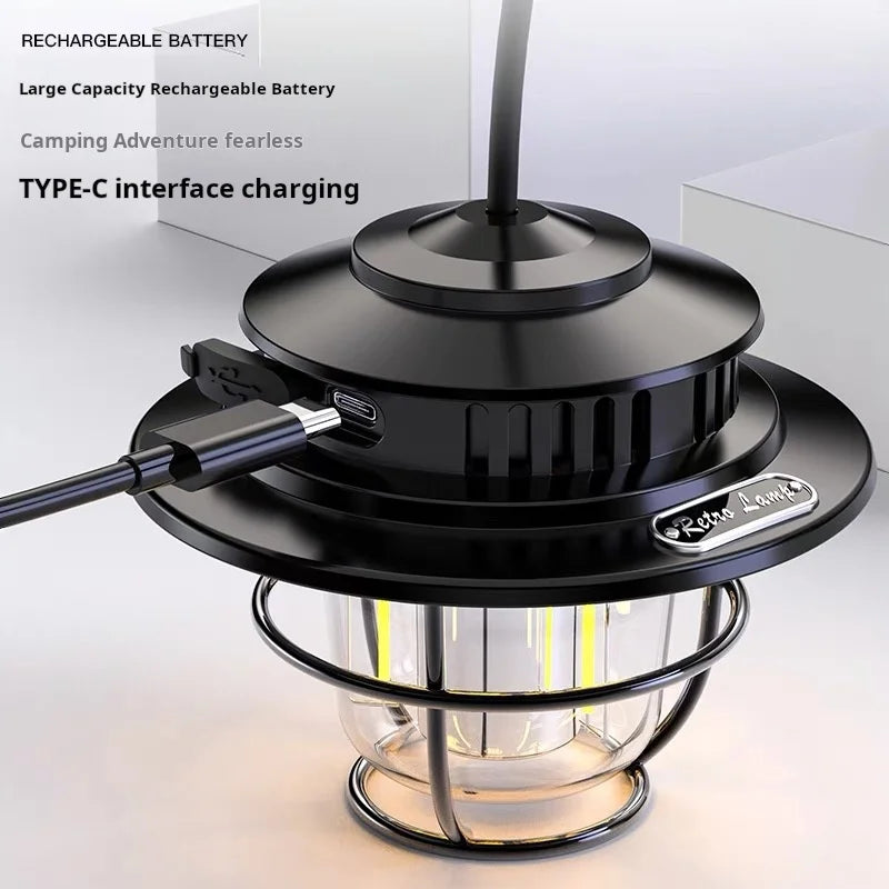 LED Camping Lamp Retro Hanging Lamp Portable Stepless Dimming Camping Light Waterproof Rechargeable Outdoor Light Lantern